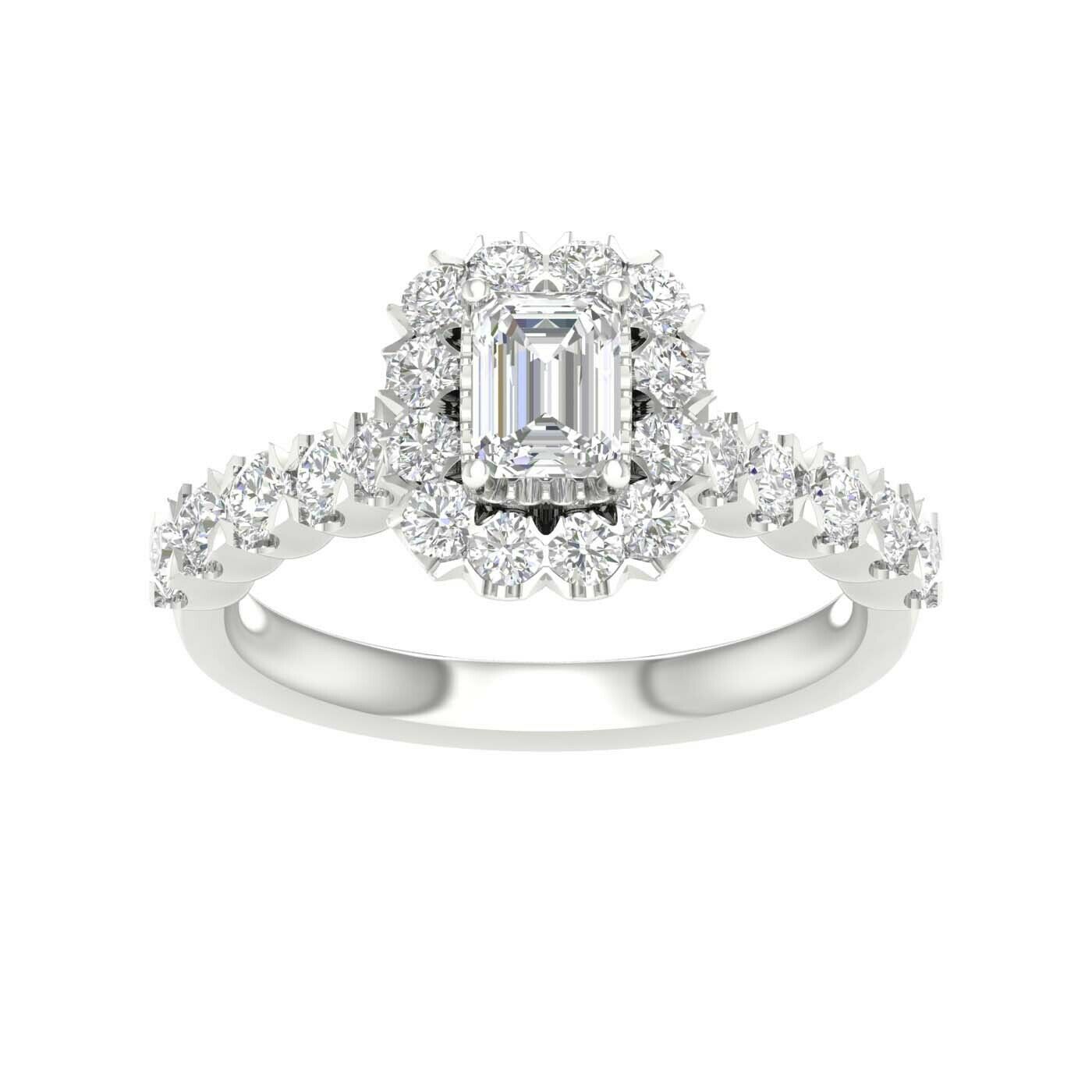 (610) 374-933014K White Gold Lab-Grown Halo Style Diamond Engagement Ring with .50 CT Emerald Cut Center and .93 CTW Round Brilliant Accents /VanScoy Jewelers of Wy